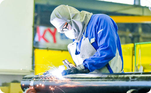 私は溶接を担当しています。ロボット溶接はコントローラーで操作しますが、実際に火を出して初めて成功か失敗かがわかります。だからこそ、狙い通り一発で成功した時の達成感は格別。手作業の方が思い通りにつくりやすい面もありますが、ロボットにはロボットの頭の使い方があり、どちらも奥が深いです。今後は溶接を極めるのはもちろん、それ以外にも広く経験を積みながら、自分の可能性を広げていきたいです。